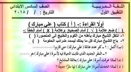 اختبار لغة عربية للمتفوقين من طلاب الصف السادس الابتدائي ترم ثانى