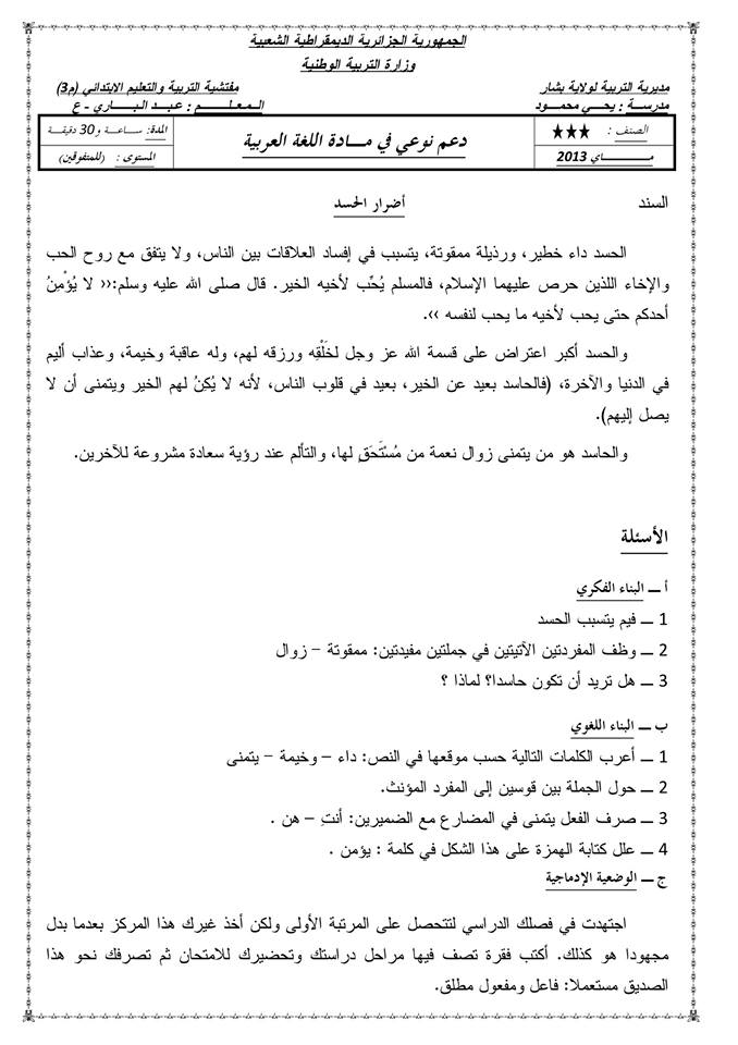 اختبارات السنة الخامسة ابتدائي الجيل الثاني الفصل الاول في اللغة العربية مع التصحيح In 2020 Exam World Information