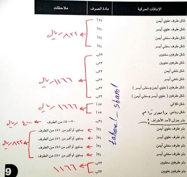 جدول الاعاقات الجديده والاعانات الي تم حذفها الشبكة السعودية لذوي الاعاقة