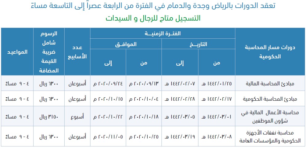 تعمل الهيئة من خلال إدارة التدريب والتطوير المهني وبالتنسيق مع الأكاديميين والمهنيين المتعاونين مع الهيئة لتحديد العناصر التفصيلية لكل موضوع من موضوعات الدورات المدرجة في البرنامج السنوي. جميع الحقوق محفوظة لصالح الهيئة السعودية للمحاسبين القانونيين socpa 2020. وتقديرا من ديوان الخدمة المدنية للدور الذي تقوم به الهيئة في مجال التدريب والتعليم صدر قرار معالي رئيس الديوان رقم 267 19 ت ب وتاريخ 28 5 1419هـ القاضي بالموافقة على تنفيذ الدورات التدريبية التي.