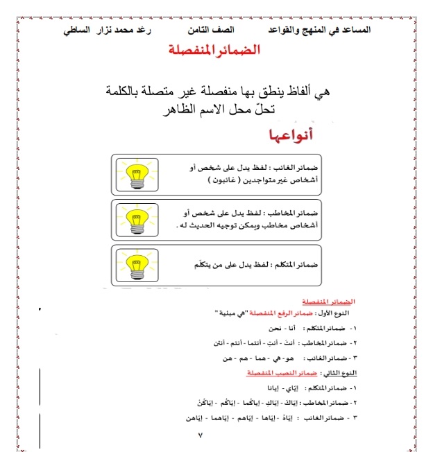 اللغة العربية أوراق عمل ضمائر النصب المتصلة للصف السابع مع الإجابات ملفاتي
