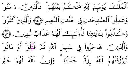 المصحف المحفظ رواية ابن ذكوان عن ابن عامر سورة الحج الآية 56