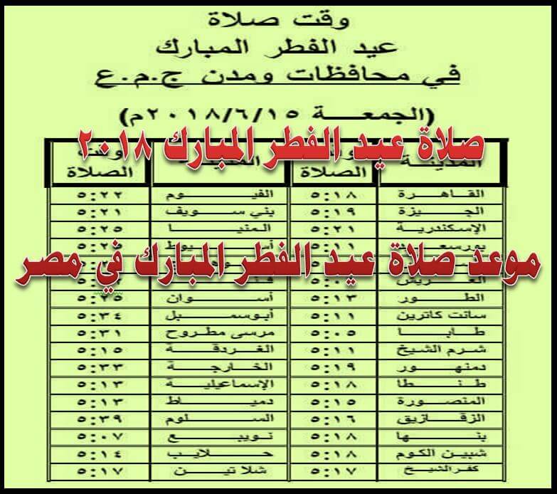 صلاة عيد الفطر المبارك 2018 موعد صلاة عيد الفطر المبارك في مصر