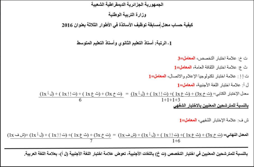 كيفية حساب معدل نتائج مسابقة توظيف الأساتذة موقع الدراسة الجزائري