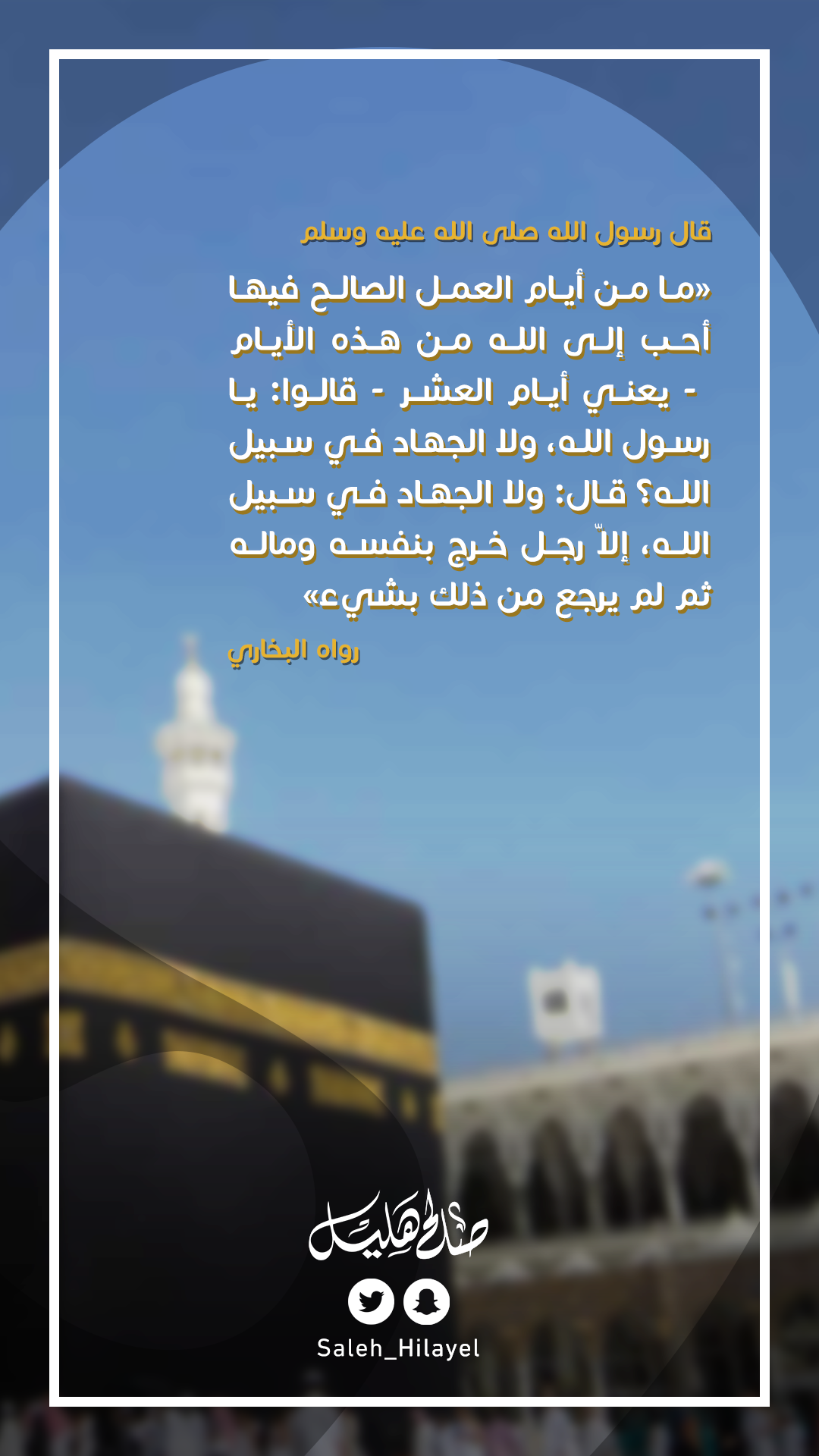 صالح هلي ل On Twitter قال رسول الله صلى الله عليه وسلم ما من أيام العمل الصالح فيها أحب إلى الله من هذه الأيام يعني أيام العشر قالوا يا رسول الله ولا