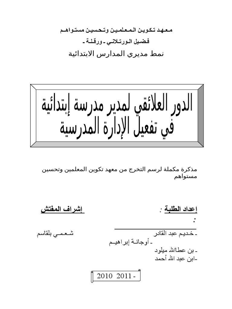 الدور العلائقي لمدير المدرسة الإبتدائية