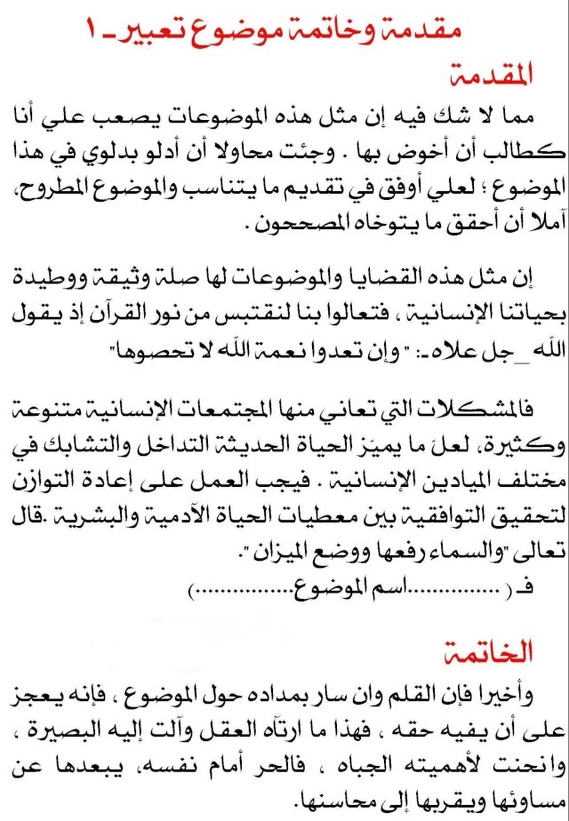 مقدمة تعبير وخاتمة سهلة يلا نذاكر