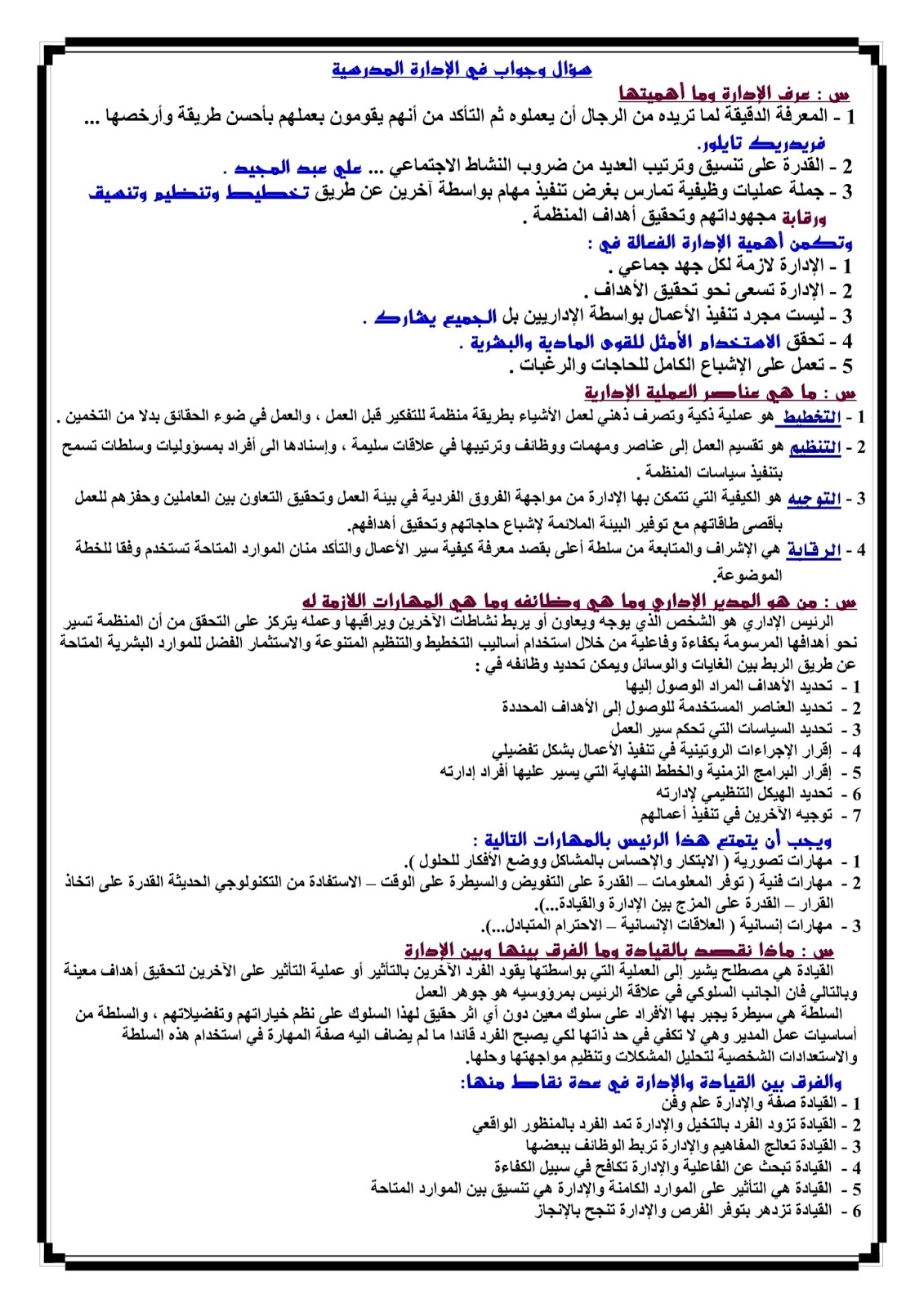 اسئلة اختبار القيادة الإدارية الفصل الثاني 1434هـ