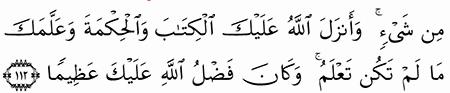 وكان فضل الله عليك عظيما و ع ل م ك م ا ل م ت ك ن ت ع ل م و ك ان ف ض ل الل ه ع ل ي ك ع ظ يما