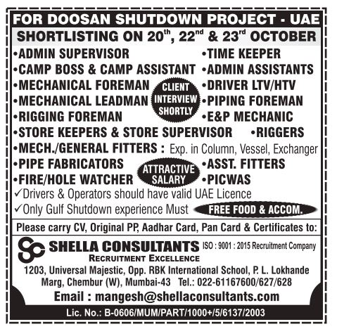 Doosan Shutdown Project Recruitment To Uae October 24 2020
