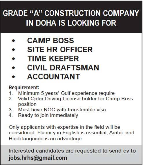 Job In Qatar Grade A Construction Company In Doha Looking For Jobs Find