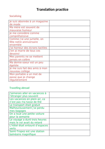 French To English Translation Practice Teaching Resources