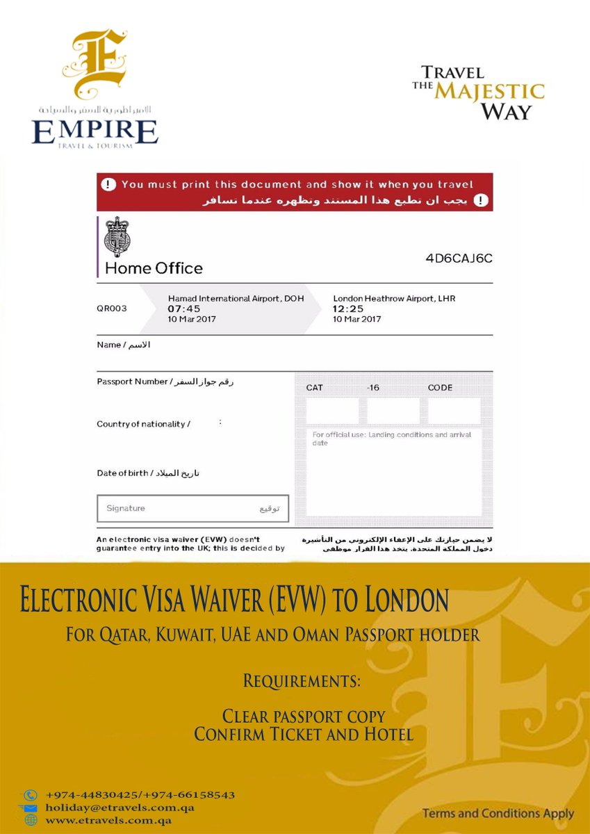 Empire Travel Qatar On Twitter We Offer Electronic Visa Waiver To London For Qatar Kuwait Uae And Oman Passport Holder